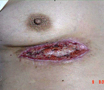 單純的手術(shù)治療切除癌灶后,應(yīng)用MEBO治療創(chuàng)面,創(chuàng)面出血少,病人無痛苦,并可避免擴(kuò)大根治性手術(shù)的再損傷,通過換藥,無損傷的使創(chuàng)面愈合,并且可無損傷的抑制殘留腫瘤組織的生長,該類病人最終都是以炎性肉芽組織的形式愈合。但對于腫瘤的復(fù)發(fā)、再發(fā)、轉(zhuǎn)移是否有抑制作用,還需長期病例隨訪及進(jìn)一步研究。