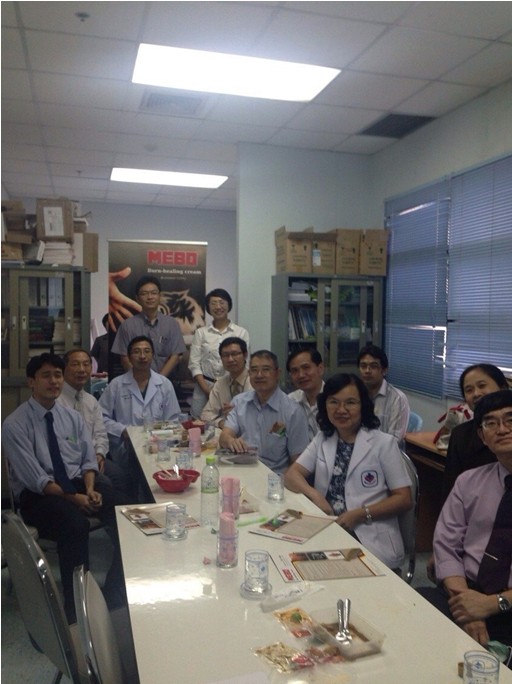 11月13日,今天的CME還是在西部北碧府的省立醫(yī)院Pahol Karnchanuburi Hospital,是該地區(qū)較大的政府醫(yī)院,政府醫(yī)院病人流量非常大,但醫(yī)生們均在百忙中抽空出席,包括兩位重點(diǎn)醫(yī)生及10位住院醫(yī)生,其中一位重點(diǎn)醫(yī)生在曼谷一家私立醫(yī)院及另外一家醫(yī)院有過使用美寶的經(jīng)歷,主要應(yīng)用在燒傷及潰瘍治療方面。另一位醫(yī)生與美寶人員進(jìn)行了親切的交流,對在該院的藥品目錄申請項(xiàng)目的使用案例表示很支持。