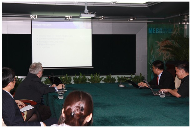 6日早晨,Dr. Joe Smith先生及強(qiáng)生的代表準(zhǔn)時(shí)到達(dá)美寶北京總部,他們受到了美寶國際集團(tuán)主席徐榮祥教授以及董事局成員的熱烈歡迎。