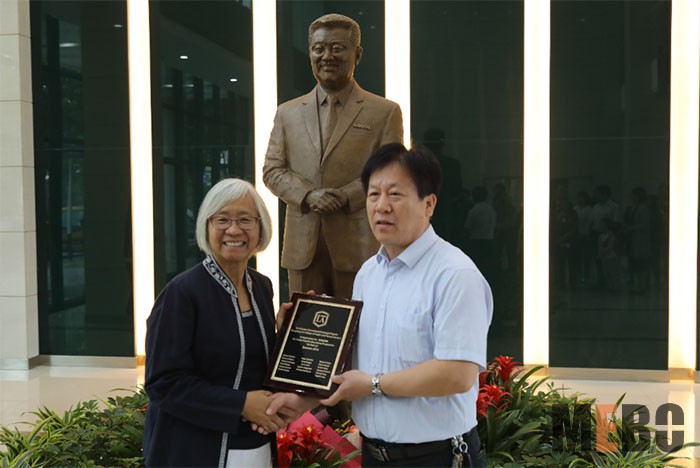 6月6日,訪學(xué)團(tuán)來(lái)到了徐榮祥教授的母校——濱州醫(yī)學(xué)院,護(hù)理學(xué)院院長(zhǎng)劉衛(wèi)東、黨總支書(shū)記趙美、副院長(zhǎng)范燕燕以及相關(guān)老師等熱情接待了來(lái)訪團(tuán)。大家一起來(lái)到“榮祥樓”一樓大廳,在徐榮祥教授的銅像前,校方老師羅倩倩對(duì)大家的到來(lái)表示歡迎,并隆重向師生團(tuán)介紹了徐榮祥教授和濱州醫(yī)學(xué)院的深厚淵源,接著訪學(xué)學(xué)生代表向徐榮祥銅像獻(xiàn)花以示感謝與敬意。