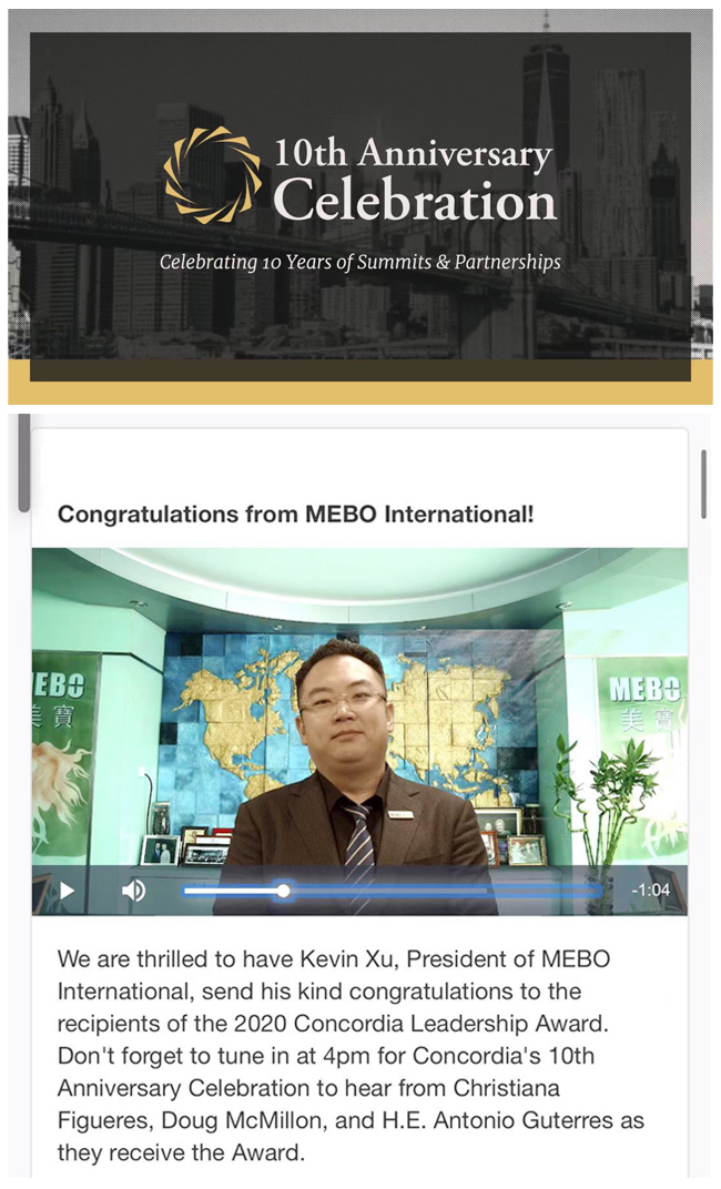 美寶集團(tuán)董事局主席徐鵬出席Concordia十年慶典并應(yīng)邀為聯(lián)合國(guó)秘書(shū)長(zhǎng)古特雷斯等人致賀詞