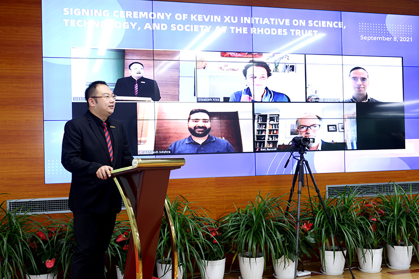 2021年9月8 日,牛津大學(xué)羅德學(xué)院“徐鵬智庫”科學(xué)、技術(shù)和社會(huì)發(fā)展倡議簽約儀式在線舉行。牛津大學(xué)羅德信托CEO、羅德學(xué)院院長Elizabeth Kiss,羅德信托全球合作總監(jiān)Rodolfo Lara,公關(guān)部主任Ben Russell;芝加哥大學(xué)“徐鵬智庫”科學(xué)、技術(shù)和全球發(fā)展倡議主任Abhilash Mishra博士;美寶集團(tuán)董事局徐鵬、李俐,總裁楊智斌,副總裁陳寶琪、張倩、劉鋼等出席了此次簽約儀式。