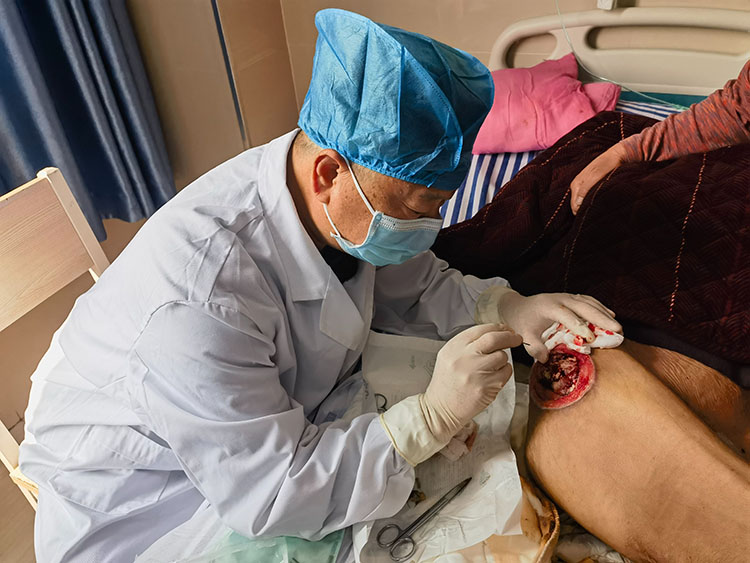 2025年3月6日,《中國燒傷創(chuàng)瘍雜志》編委、燒傷創(chuàng)瘍再生醫(yī)療技術臨床專家張強,應邀來到淮南新華醫(yī)療集團北方醫(yī)院,對一例長期臥床導致多發(fā)性壓瘡患者進行了會診,張主任對創(chuàng)面壞死組織清除后進行再生醫(yī)療技術規(guī)范換藥以及壓瘡深層腔隙和潛行創(chuàng)面換藥注意事項進行講解并示范換藥,受到醫(yī)患雙方的一致好評!