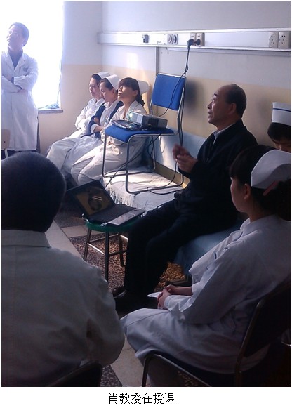 肖摩教授首先在丁主任的帶領(lǐng)下,對住院的燒傷、創(chuàng)瘍患者進行了查房會診,對應(yīng)用再生醫(yī)療技術(shù)治療的療效給與了肯定。在演講中首先高興的向大家報告了徐榮祥教授獲得2013年 Golden Biatec 國際獎的消息,并介紹了最近中國知識產(chǎn)權(quán)局正式授予徐榮祥教授“潛能再生細胞及其培養(yǎng)方法”發(fā)明專利權(quán)的報道,感謝潞河醫(yī)院燒傷創(chuàng)瘍科丁路主任及全科人員多年來在普及應(yīng)用MEBT/MEBO工作中做出的貢獻和辛勤工作,接連的喜訊使在座的人員情緒高漲,并為徐教授會的國際獎項表示祝賀。
