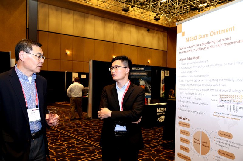 會(huì)議期間,許多美寶的老朋友們到訪展臺(tái),詢問美寶近況,關(guān)心燒傷再生醫(yī)學(xué)世界范圍內(nèi)的發(fā)展。其中來自美國俄克拉何馬州(Oklahoma)的Dr. Paul Silverstein是美寶近30年來的老朋友(1972年間參與美國越戰(zhàn)士兵治療并獲得美國Meritorious Service Medal獎(jiǎng)?wù)拢?,如?0多歲高齡的他依然記得徐榮祥大夫在美國的演講,記得2003年John A. Boswick論壇上與美寶的深切交流(注:John A. Boswick Symposium是美國燒傷界最知名的論壇之一,1977年開始每年2月份在美國夏威夷舉行),深切希望美寶技術(shù)和產(chǎn)品能夠在美國盡快得到應(yīng)用。同時(shí),來自中國、印度、卡塔爾、土耳其、約旦、印尼及馬來西亞等國、應(yīng)用美寶濕潤燒傷膏多年的醫(yī)療專家也到訪了展臺(tái),紛紛詢問美寶在美國的注冊(cè)進(jìn)展。