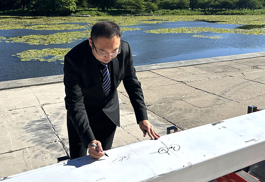 當(dāng)?shù)貢r(shí)間2024年6月10日,美寶集團(tuán)董事局主席徐鵬受邀在備受矚目的奧巴馬總統(tǒng)中心施工現(xiàn)場的頂樓橫梁上簽下了自己的名字,這條橫梁將被置放于奧巴馬總統(tǒng)中心的最高點(diǎn)——博物館大樓的“天空屋”內(nèi)。這是繼奧巴馬總統(tǒng)本人之后,第二位在這座即將崛起的綜合性建筑上留下永恒印記的貢獻(xiàn)者。