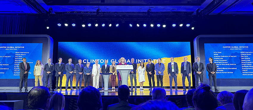 當(dāng)?shù)貢r(shí)間2023年9月19日,美寶集團(tuán)董事局主席徐鵬作為2022 CGI倡議“歐洲修復(fù)計(jì)劃”發(fā)起人應(yīng)邀登上克林頓基金會(huì)CGI大會(huì)主會(huì)場講臺,與希拉里·克林頓及其他倡議發(fā)起者包括Orlando Bloom 和 Liev Schreiber一起見證新的CGI國際救助行動(dòng)網(wǎng)絡(luò)成立。