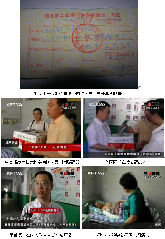由于該欄目的收視率非常高,當(dāng)美寶國(guó)際集團(tuán)襄樊地區(qū)辦事處的劉平同志收看了此報(bào)道后,他在第一時(shí)間向駐湖北省區(qū)領(lǐng)導(dǎo)、醫(yī)藥集團(tuán)總裁楊智斌進(jìn)行了匯報(bào),美寶國(guó)際集團(tuán)的領(lǐng)導(dǎo)在得知情況后當(dāng)即作出指示,要求向劉洪林患者采取救助,并在必要之時(shí)派出專(zhuān)家組進(jìn)行會(huì)診救助,這些工作必需在24小時(shí)之內(nèi)完成。在接到領(lǐng)導(dǎo)的指示后,美寶國(guó)際集團(tuán)湖北辦事處主任黃彥勇帶領(lǐng)湖北辦事處所有工作人員帶著籌備好的藥物——美寶濕潤(rùn)燒傷膏及美寶創(chuàng)瘍貼,冒著酷暑趕到了燒傷創(chuàng)瘍中心襄樊分中心為患者進(jìn)行了愛(ài)心捐贈(zèng)。