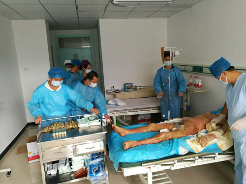 經(jīng)該院燒傷科姜月虎主任帶領(lǐng)的搶救小組20余天的晝夜奮戰(zhàn),三例大面積特重度燒傷患者已全部成功救治。中國(guó)中西醫(yī)結(jié)合學(xué)會(huì)燒傷專業(yè)委員會(huì)再生醫(yī)療技術(shù)專家與救治小組的同志們一起戰(zhàn)斗在治療一線,全程參與了救治。
