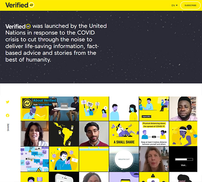 VERIFIED平臺(tái)是聯(lián)合國(guó)為應(yīng)對(duì)新冠肺炎疫情而發(fā)起,旨在改善獲得準(zhǔn)確信息的途徑。聯(lián)合國(guó)試圖組織一個(gè)由數(shù)百萬(wàn)在線志愿者組成的網(wǎng)絡(luò),在龐雜的信息中提供有關(guān)新冠疫情的科學(xué)信息,并分享真實(shí)而美好的抗疫故事。