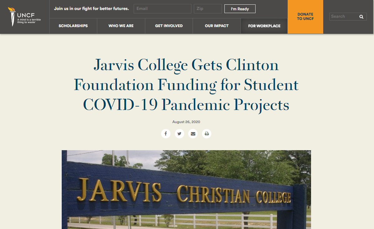賈維斯基督教學院,榮獲來自克林頓基金會的“新冠病毒學生行動基金”