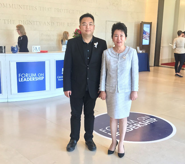 2018年4月18-20日,在美國(guó)得克薩斯州達(dá)拉斯市喬治•布什總統(tǒng)中心舉行為期三天的領(lǐng)導(dǎo)力論壇系列活動(dòng),前總統(tǒng)喬治•布什及其夫人勞拉•布什,前副總統(tǒng)切尼及其夫人、前國(guó)務(wù)卿賴斯女士、前國(guó)會(huì)議長(zhǎng)博納先生以及亞馬遜創(chuàng)始人CEO貝佐斯先生等重要嘉賓出席本次論壇。應(yīng)布什總統(tǒng)中心的邀請(qǐng),美寶集團(tuán)董事局主席及國(guó)際再生醫(yī)學(xué)與創(chuàng)面修復(fù)學(xué)會(huì)總裁徐鵬先生、美寶集團(tuán)董事局副主席及美國(guó)徐榮祥基金會(huì)主席李俐女士也出席了本次論壇,并作為特別嘉賓出席布什總統(tǒng)及切尼副總統(tǒng)各自主辦的小范圍招待會(huì)。本次論壇開(kāi)幕前一天,喬治•布什總統(tǒng)的母親、美國(guó)前第一夫人芭芭拉•布什于17日晚間去世,享年92歲。本次論壇于18日依舊如期舉行,只是來(lái)賓胸前都別了一個(gè)小白絲帶表示悼念。