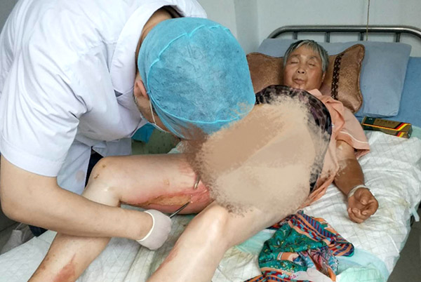 地震核心區(qū)宜賓礦山急救醫(yī)院外科主任、四川省中西醫(yī)結(jié)合學(xué)會燒傷與創(chuàng)面修復(fù)專委會常委繆浩主任應(yīng)用再生醫(yī)療技術(shù)救治受傷群眾。
