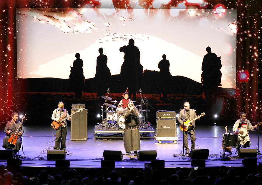 晚會(huì)在一曲激昂的《初升的太陽(yáng)》中拉開帷幕,杭蓋樂隊(duì)以其天籟之音瞬間將觀眾帶入廣袤的草原,讓人仿佛感受到了來(lái)自中國(guó)內(nèi)蒙古的淳樸與熱情。隨后,杭蓋樂隊(duì)又帶來(lái)了《希格希日》和《鴻雁》兩首經(jīng)典曲目,將蒙古民間音樂與當(dāng)代搖滾巧妙融合,展現(xiàn)出國(guó)際化的民族搖滾風(fēng)格,為晚會(huì)增添了濃厚的文化色彩。最后更是以一首《酒歌》引來(lái)全場(chǎng)轟動(dòng)與共舞,開場(chǎng)即將晚會(huì)推向高潮。