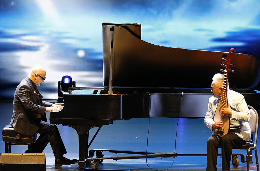 作為晚會(huì)亮點(diǎn)之一,格萊美音樂大獎(jiǎng)得主奧瑪爾攜手中國(guó)國(guó)樂界的泰斗方錦龍,共同登臺(tái),開啟了一場(chǎng)跨越東西、融匯古今的音樂盛宴與深度對(duì)話。奧瑪爾先以他的經(jīng)典之作《Take My Hand》為引子,引領(lǐng)全場(chǎng)觀眾穿越至一個(gè)絢爛多彩、異域風(fēng)情濃厚的音樂幻境。隨后,他與方錦龍攜手合作,以《玄鳥》為曲目巧妙地將中西樂器之聲交織在一起,展現(xiàn)了兩種文化和諧共生、交相輝映的獨(dú)特藝術(shù)魅力。緊接著,方錦龍?jiān)僖砸磺?dú)奏《春江花月夜》將晚會(huì)推向了高潮。那悠揚(yáng)婉轉(zhuǎn)的旋律展現(xiàn)了國(guó)樂的深邃意境與無(wú)窮魅力,深深觸動(dòng)了每一位聽眾的心弦。