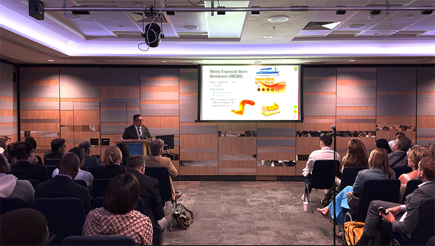 在第二天的日程中,Gerald Abesamis受邀進(jìn)行大會(huì)主題演講,帶來(lái)了“再生醫(yī)療技術(shù)治療面部燒傷的臨床效果”的演講。演講中,他從面部的特殊性及治療難度出發(fā),側(cè)重展現(xiàn)濕潤(rùn)暴露療法無(wú)需復(fù)雜的敷料,治療期間不會(huì)對(duì)面部造成功能性的影響;通過(guò)臨床試驗(yàn)結(jié)果,展現(xiàn)再生醫(yī)療技術(shù)相對(duì)傳統(tǒng)治療方案,不僅有更顯著的療效,更能提供良好的緩解疼痛的功效。