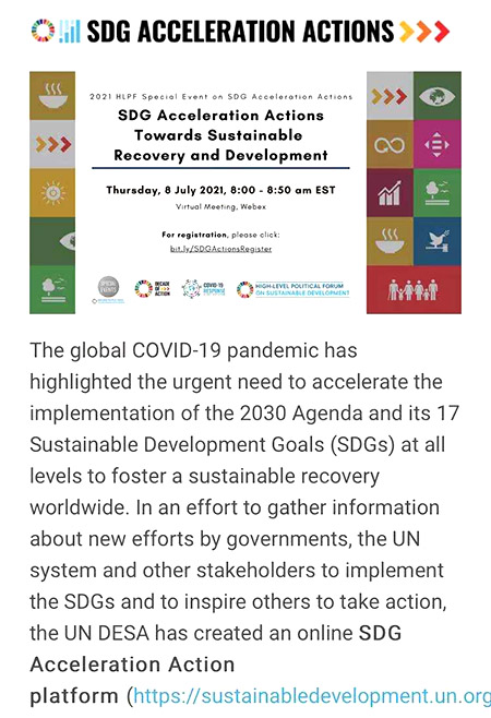 7月8日,2021 年可持續(xù)發(fā)展目標(biāo)加速行動(dòng)聯(lián)合國(guó)可持續(xù)發(fā)展高級(jí)別政治論壇(HLPF)特別活動(dòng)在線舉行,美寶集團(tuán)董事局主席徐鵬應(yīng)邀出席。