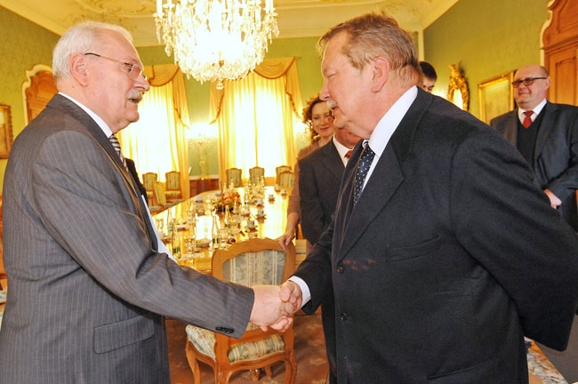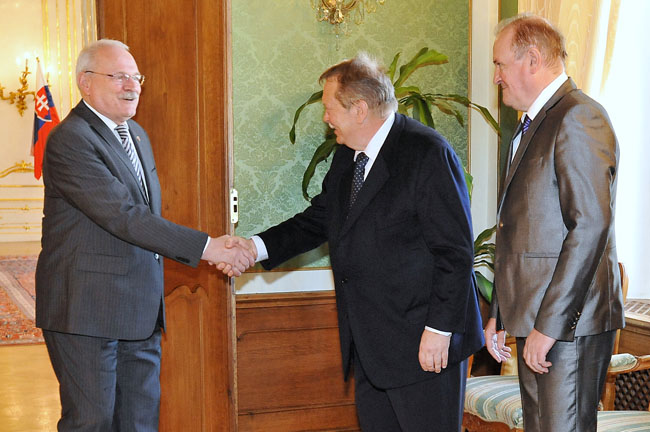 當(dāng)?shù)貢r(shí)間2014年3月10日上午11點(diǎn),斯洛伐克共和國(guó)總統(tǒng)I. Gasparovic歡迎IEF經(jīng)濟(jì)俱樂(lè)部代表團(tuán)??偨y(tǒng)向IEF代表P. Kasalovsky先生表示親切問(wèn)候。
