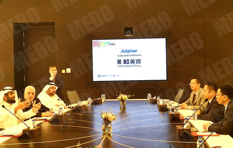 隨后,Julphar董事局主席Sheikh Saqer率副主席及高管團(tuán)隊(duì)與徐鵬主席率領(lǐng)的美寶團(tuán)隊(duì)就美寶集團(tuán)與Julphar的商務(wù)合作開(kāi)展了深入的會(huì)談,回顧了2009年以來(lái)雙方在商業(yè)合作領(lǐng)域取得成就,剖析了近年來(lái)市場(chǎng)發(fā)展遇到的問(wèn)題及挑戰(zhàn),會(huì)談達(dá)成多項(xiàng)共識(shí)。Sheikh Saqer向徐鵬介紹了3名新任董事會(huì)成員,他指出過(guò)去兩年多來(lái)Julphar 的發(fā)展遇到一系列問(wèn)題,包括與美寶集團(tuán)及其高層之間的交流溝通,并提出了一系列的改進(jìn)措施與建議。他強(qiáng)調(diào)未來(lái)必須建立董事局級(jí)別定期溝通渠道,保證雙方合作項(xiàng)目的順利執(zhí)行,也對(duì)未來(lái)雙方深化合作、再次騰飛充滿(mǎn)了信心。徐鵬提出精誠(chéng)合作、互信共贏是雙方30年來(lái)緊密合作的基礎(chǔ),雙方應(yīng)在醫(yī)藥業(yè)務(wù)加深加強(qiáng)合作外,還要加大在國(guó)際交流、國(guó)際高端學(xué)術(shù)活動(dòng)、社會(huì)企業(yè)責(zé)任等領(lǐng)域的深度合作,共同打造美寶-Julphar品牌。同時(shí)也特別指出雙方需要重視并探尋美寶技術(shù)產(chǎn)品在中東及非洲地區(qū)罕見(jiàn)?。ㄈ缦忍煨云つw缺損)的應(yīng)用契機(jī)。