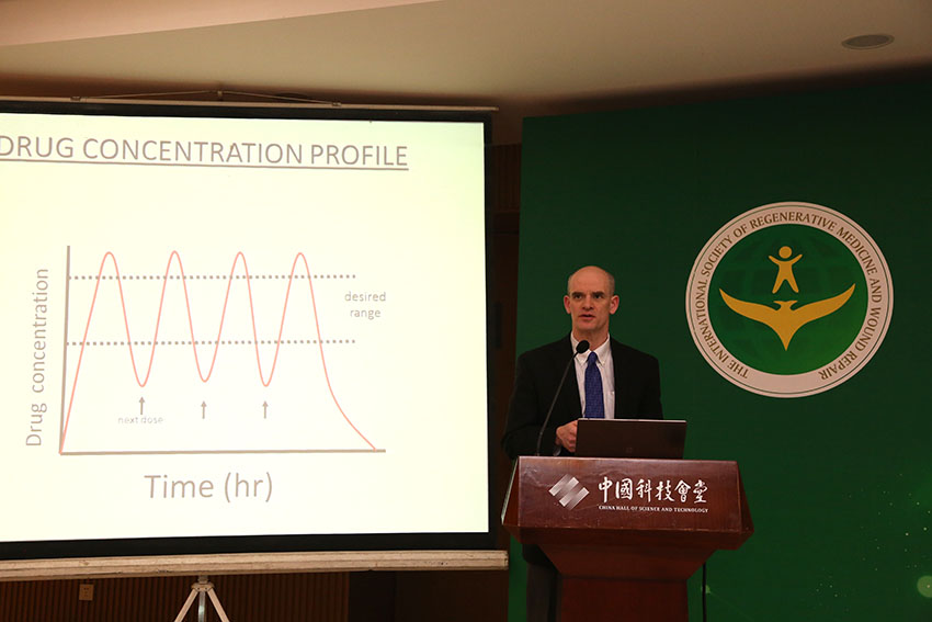 羅伯特P.•平卡斯家族生物工程學(xué)教授、哈佛大學(xué)懷斯生物工程研究所核心教員BIDMC徐榮祥再生治療中心科學(xué)咨詢委員會成員大衛(wèi) J.穆尼博士基于水凝膠的給藥方法,從藥物濃度、大規(guī)模藥物輸送系統(tǒng)方面詮釋了給藥方法,并表示美國有800萬、全球有2700萬人患有周圍血管病,最后他介紹了適用于各種濕表面的韌性粘合劑。