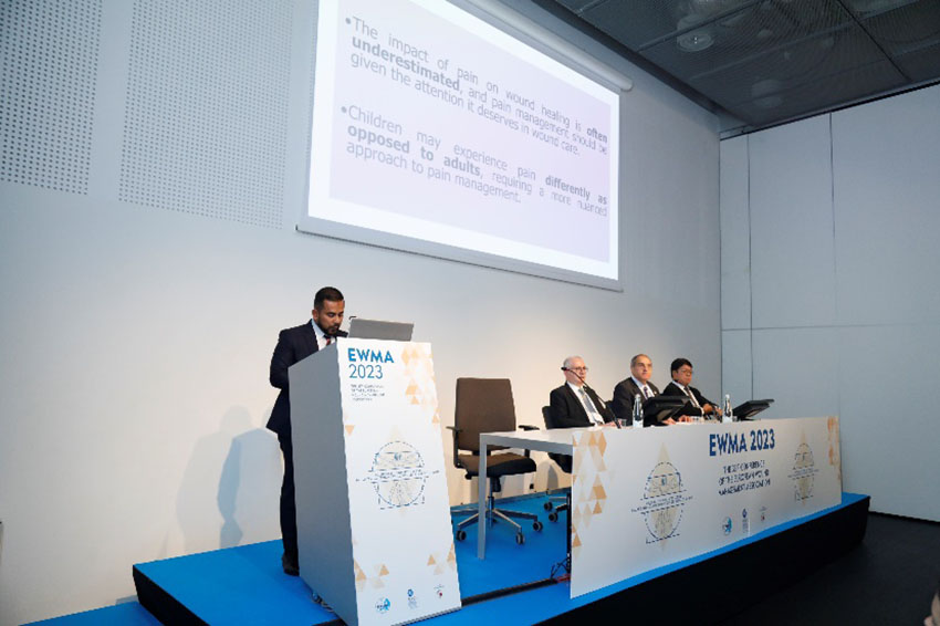 研討會(huì)首位講者是馬來(lái)西亞Raja Perempuan Zainab II醫(yī)院的創(chuàng)面管理科主任Mohd Zurairie,他以“提高小兒外傷創(chuàng)面治療體驗(yàn):在治療中減少疼痛的策略”為主題發(fā)表了演講,深入淺出地介紹了再生醫(yī)療技術(shù)減輕疼痛的機(jī)制與作用。