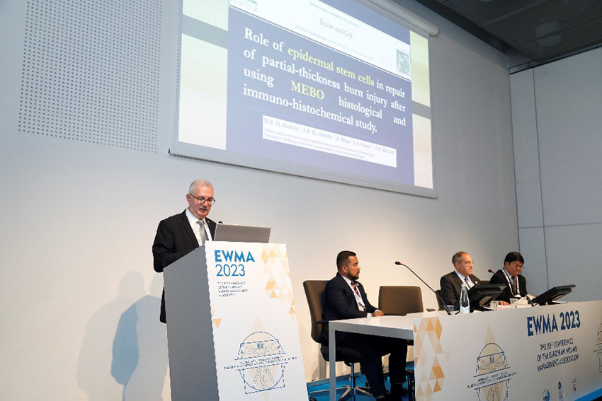 5月4日下午,在大會(huì)主題演講中,埃及亞歷山大大學(xué)外科教授Mahmoud Sakr以“再生醫(yī)療技術(shù)在開(kāi)放性傷口治療中的療效評(píng)估”為題,分享了應(yīng)用再生醫(yī)學(xué)技術(shù)治療各類(lèi)開(kāi)放性創(chuàng)面的寶貴臨床經(jīng)驗(yàn)。