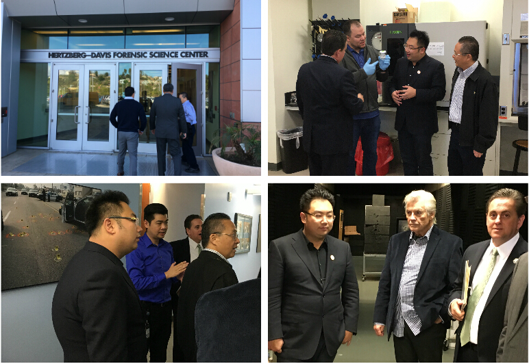 午餐后,戈麥斯校長親自駕駛校園電瓶車帶徐鵬總裁和來賓來到美國除聯(lián)邦調(diào)查局以外最大的法醫(yī)學中心-由洛杉磯郡警和市警合作的赫茲伯格-戴維斯法醫(yī)學中心參觀。該中心的毒理實驗室主任和器械主管警官全程引領(lǐng)和講解,該中心是美劇CSI(犯罪現(xiàn)場調(diào)查)鑒證的技術(shù)支持。