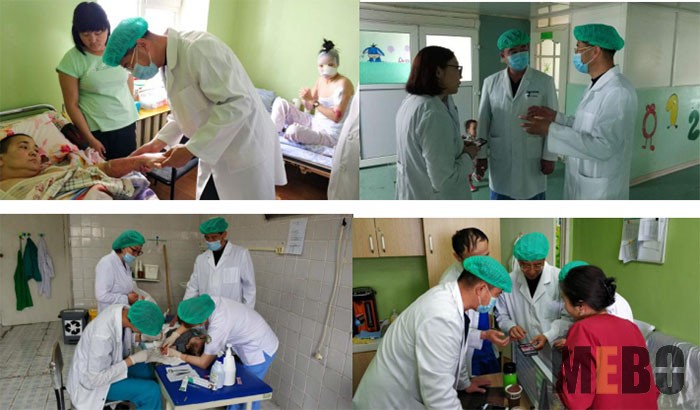 培訓(xùn)結(jié)束之后,陳永翀主任受邀前往門診換藥處對近期因森林火災(zāi)燒傷的消防員的清創(chuàng)和包扎進行指導(dǎo)。最后,創(chuàng)傷科主任再次向美寶國際的人道主義精神表示欽佩,并向一如既往支持再生醫(yī)學(xué)在蒙古國落地生根的中蒙專家們表達(dá)了感謝,并呼吁共同為后續(xù)再生醫(yī)學(xué)培訓(xùn)班的開展盡最大的努力。